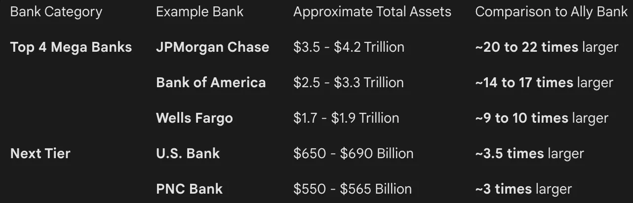 While Ally is a major player, a look at the top US banks by revenue and assets shows several of its competitors dwarfing it in size. Yet, in the AI-powered answer box, Ally is winning the battle for visibility.