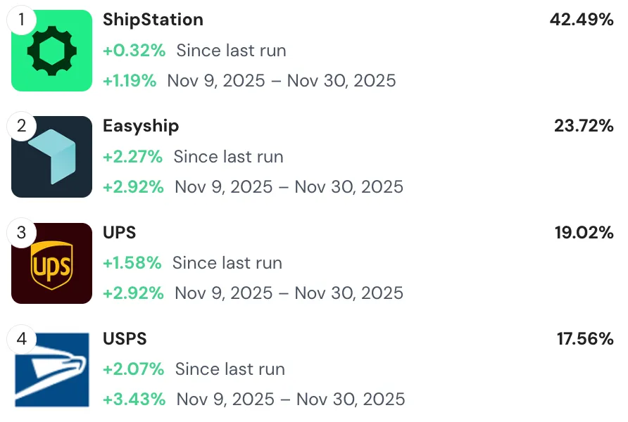 The logistics sector presents an even more dramatic example. Brandlight’s analysis of 1,500 relevant, unbranded prompts across five major AI surfaces (ChatGPT, Claude, Perplexity, Copilot, and Google’s AI Overview) reveals ShipStation is more apparent than UPS and even the United States Postal Service (USPS) - two entities with estimated valuations well into the tens of billions. DHL and FedEx also lagged significantly barely making it into the top 10. This data is clear: in the new AI search paradigm, revenue and assets do not grant immunity from competition.